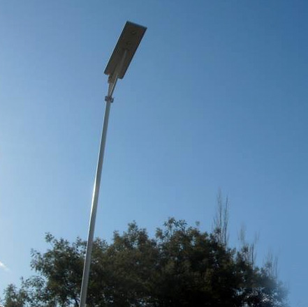 Cada Luminaria Solar Integrada se instala en una columna tipo monoposte, preparada para fijar en una pequeña base de hormigón.