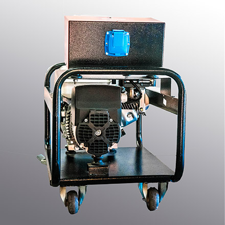 La parte motriz compuesta por un motor de 4 tiempos a combustión interna del tipo naftero de fabricación japonesa marca HONDA de 200 cm3 de 6,5 Hp con válvulas a la cabeza de bajo nivel de ruido de la línea OHV de reducido nivel de consumo de combustible y aceite, aumentando la potencia de salida e incrementando la durabilidad del motor , enfriado por aire forzado por medio de turbina eyectora comandada por el cigüeñal con una relación de compresión de 8:1 con sistema de encendido transistorizado sin platinos sistema de arranque manual por medio de cuerda retráctil con tanque de combustible de 5 Lts. Lo que nos brinda una autonomía de aproximadamente 4 Horas continuas, del tipo monocilindrico inclinado a 25 Gdos del tipo horizontal a 3000 r.p.m.